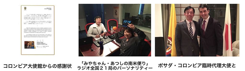 また、ほぼ日本全国で聞くことができるラジオ「みやちゃん・アツシの南米便り」という番組で